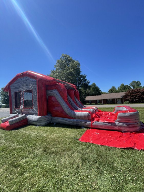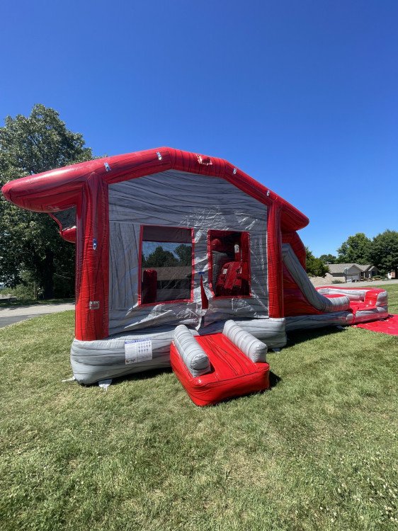 Celebrate the festive season with our Holiday Cheer Combo! Decked out in cheerful red and gray, this inflatable is the perfect addition to any holiday gathering. The Holiday Cheer Combo combines a roomy bounce house with an exhilarating slide, creating a winter wonderland of fun for kids of all ages.