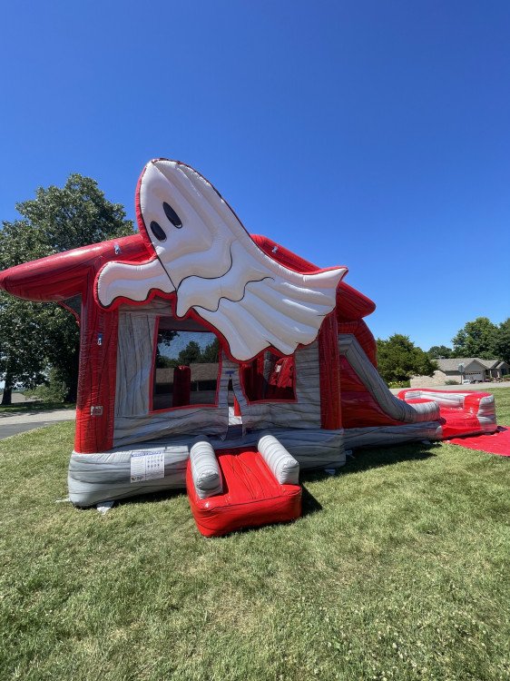 Introducing the **Spooky Funhouse Combo** inflatable! This spooky-themed bounce house and slide combo is perfect for Halloween and beyond. Kids will have a blast bouncing in the haunted funhouse and sliding down the thrilling slide. Easy to set up and crafted from durable materials, it's ideal for parties, corporate events, or just spooky playtime at home. Bring home the fun and excitement of the Spooky Funhouse Combo today!