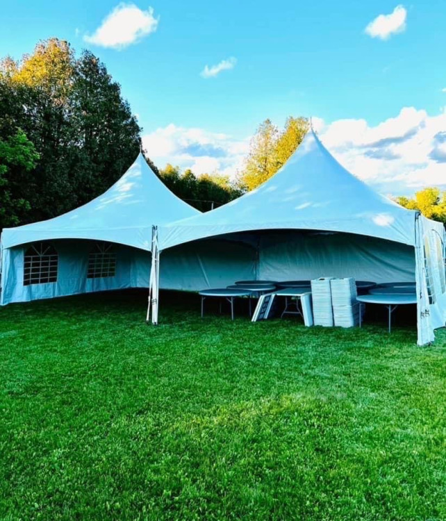 Imagine hosting an outdoor event under the grand elegance of the 20 x 40 High Peak Tent. This spacious shelter provides an air of sophistication and protection from the elements, no matter the weather. With its striking high peak design, it transforms any space into a gathering place with visual flair, offering ample room for tables, chairs, and creatively arranged decorations. Whether it's a wedding, birthday party, or corporate event, this tent serves as the perfect canopy to shade your unforgettable moments, providing both luxury and functionality.