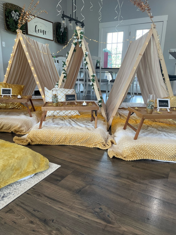 Transform any room into a cozy wonderland with the Slumber Party Tent rental. This charming setup provides a snug and whimsical haven for nighttime adventures, perfect for sleepovers! Kids and teens will delight in this enchanting shelter, offering a safe spot for storytelling, games, and late-night snacks. The Slumber Party Tent is your ticket to a night filled with giggles and unforgettable memories.