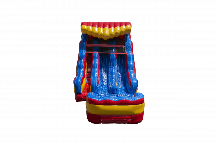 Introducing 'Taste the Rainbow' – a thrilling 15-foot double-lane inflatable slide that promises a spectrum of excitement! Dive into a kaleidoscope of colors as you race side by side on this vibrant, gravity-defying adventure. Perfect for events, parties, or any occasion, 'Taste the Rainbow' brings joy to all ages with its towering height and exhilarating descent. Make a splash at your next gathering with this inflatable masterpiece, where the journey down is as delightful as the hues you'll encounter. Get ready for a sliding experience that's as sweet as its name suggests!